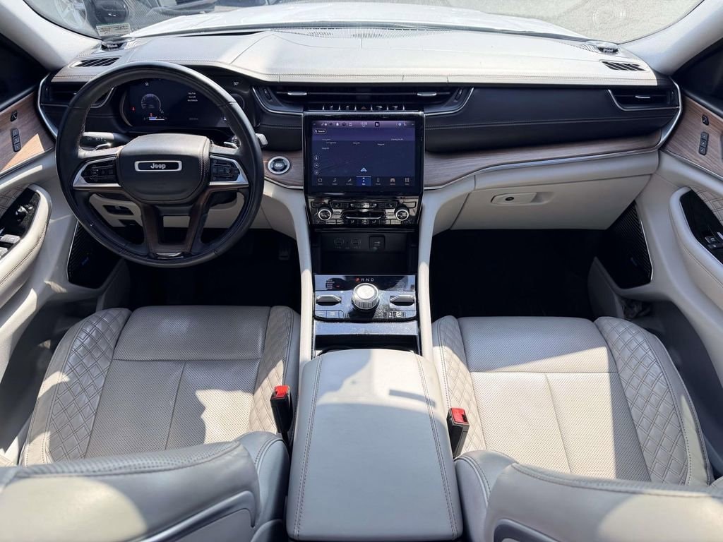 4WD, 2nd-Row Manual Window Shades, ADV Protech Group IV, Heads-Up Display, Luxury Tech Group V, Night Vision w/Pedestrian-Animal Detection, Quick Order Package 25S, Rearview Autodim Digital Display Mirror, Wireless Charging Pad, 10 Speakers, 19 Speakers High Performance Audio, 3.45 Rear Axle Ratio, 4-Wheel Disc Brakes, 950 Watt Amplifier, ABS brakes, Active Noise Control System, Adaptive suspension, Air Conditioning, Alloy wheels, AM/FM radio: SiriusXM with 360L, Anti-whiplash front head restraints, Audio memory, Auto High-beam Headlights, Auto-dimming door mirrors, Auto-dimming Rear-View mirror, Auto-leveling suspension, Automatic temperature control, Brake assist, Bumpers: body-color, Compass, Delay-off headlights, Driver door bin, Driver vanity mirror, Dual front impact airbags, Dual front side impact airbags, Electronic Stability Control, Emergency communication system, Four wheel independent suspension, Front anti-roll bar, Front Bucket Seats, Front Center Armrest w/Storage, Front dual zone A/C, Front fog lights, Front reading lights, Fully automatic headlights, Garage door transmitter, Genuine wood dashboard insert, Genuine wood door panel insert, Heated door mirrors, Heated front seats, Heated rear seats, Heated steering wheel, Illuminated entry, Knee airbag, Leather steering wheel, Low tire pressure warning, Memory seat, Nappa Leather Seats, Navigation System, Normal Duty Suspension, Occupant sensing airbag, Outside temperature display, Overhead airbag, Overhead console, Panic alarm, Passenger door bin, Passenger vanity mirror, Power door mirrors, Power driver seat, Power Liftgate, Power moonroof, Power passenger seat, Power steering, Power windows, Radio data system, Radio: Uconnect 5 Nav w/10.1" Display, Rain sensing wipers, Rear air conditioning, Rear anti-roll bar, Rear dual zone A/C, Rear reading lights, Rear seat center armrest, Rear window defroster, Rear window wiper, Remote keyless entry, Roof rack: rails only, Security system, Speed control, Speed-Sensitive Wipers, Split folding rear seat, Spoiler, Steering wheel memory, Steering wheel mounted audio controls, Tachometer, Telescoping steering wheel, Tilt steering wheel, Traction control, Trip computer, Turn signal indicator mirrors, Variably intermittent wipers, Ventilated front seats, Voltmeter, Wheels: 20" x 8.5" Fully Painted Aluminum Silver, 4WD, 2nd-Row Manual Window Shades, ADV Protech Group IV, Heads-Up Display, Luxury Tech Group V, Night Vision w/Pedestrian-Animal Detection, Quick Order Package 25S, Rearview Autodim Digital Display Mirror, Wireless Charging Pad.